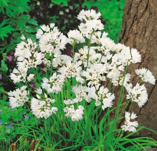 Dieses Hybrid-Allium wird auch häufig als essbare Pflanze verwendet: Seine Blätter haben einen angenehmen Geschmack und ein starkes Knoblaucharoma. Die Blütezeit ist von Mai bis Juli.