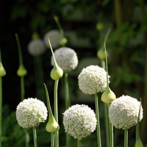 Die üppigen Köpfe von Allium White Cloud sehen wirklich aus wie schneeweiße Wolken