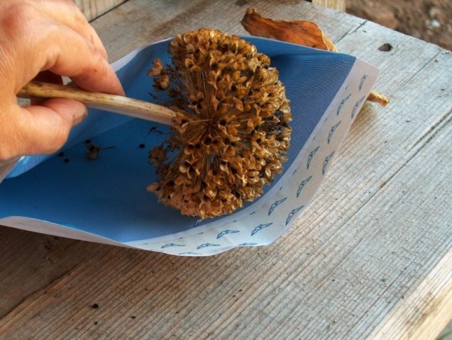 Zierzwiebelsamen werden normalerweise von den ersten großen und schönen "Kugeln" geerntet und warten darauf, dass sie vollständig blühen.