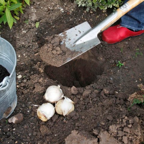 Um ein Verrotten der Zwiebeln im Boden zu verhindern, wird empfohlen, ein wenig Flusssand zu schließen.