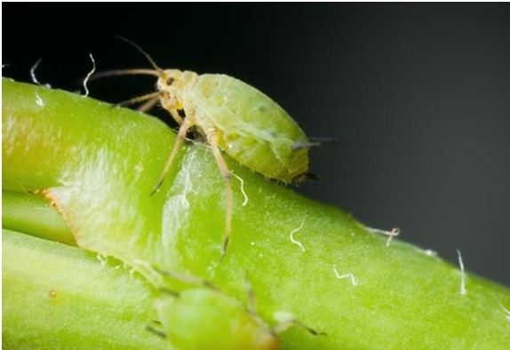 Ein ebenso gefährlicher Schädling ist die Blattlaus, die nicht nur Kohl und Radieschen, sondern auch Blumenkulturen liebt. Blattläuse verderben schnell das Laub, was eine normale Ernährung der Blume unmöglich macht.