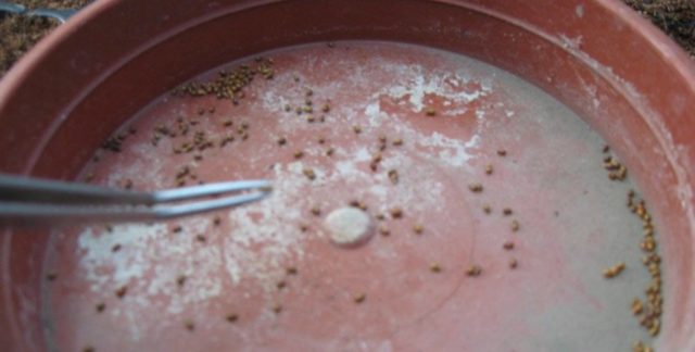 Vor der Aussaat wird der Behälter desinfiziert, mit einer Mischung aus leicht saurer Erde und Sand gefüllt und gut angefeuchtet.
