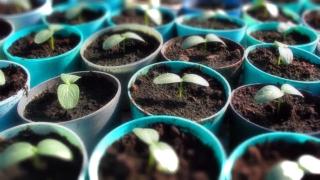 Wenn Sie Samen für Setzlinge in Einwegbehältern säen, können Sie mit nassen Zahnstochern abwechselnd 1-2 Samen in den Boden bewegen.