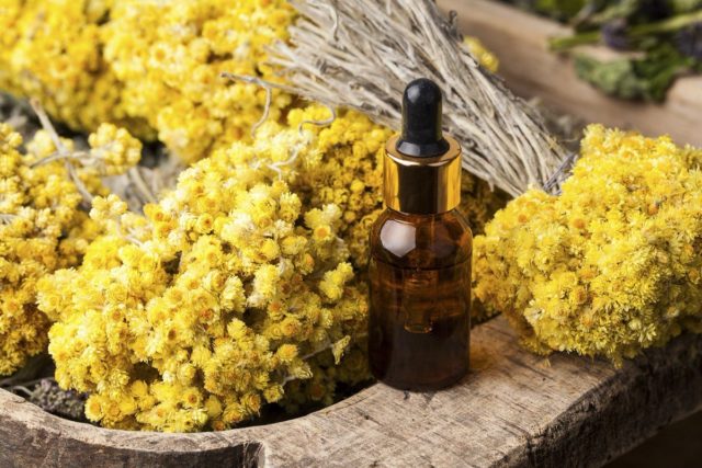 Das Mittel wird nicht nur zur Behandlung, sondern auch für kosmetische Aromatherapiezwecke verwendet. Gesichtsmasken straffen die Haut, verlangsamen das Altern, lindern Schuppenbildung und Akne. Helichrysumöl hat im Alltag Anwendung gefunden.