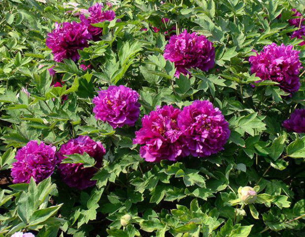 Aufgrund der ungewöhnlich schönen Form der Blätter behält die lila Pfingstrose auch nach der Blüte ihre dekorative Wirkung. Resistent gegen Krankheiten. Fühlt sich 20 Jahre lang ohne Transplantation an einem Ort gut an.