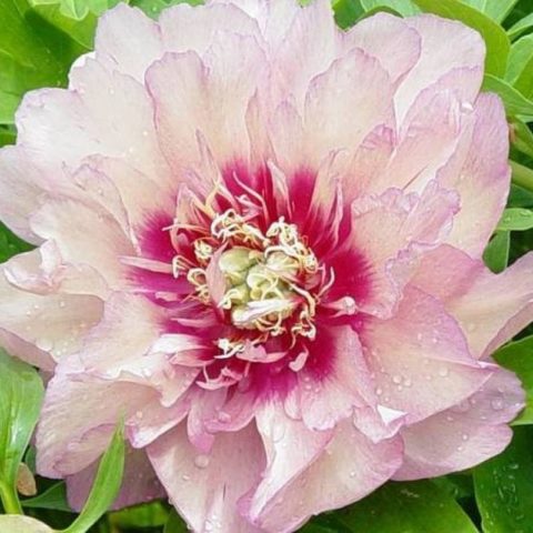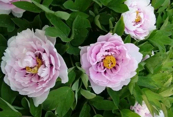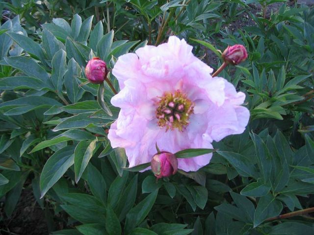 Ling hua zhan lu - Pfingstrose wächst bis zu 2 m. Wachstum kräftig. Es hat große Blätter von tiefgrüner Farbe, dank derer es während der gesamten Saison sein dekoratives Aussehen behält. Frostbeständig.