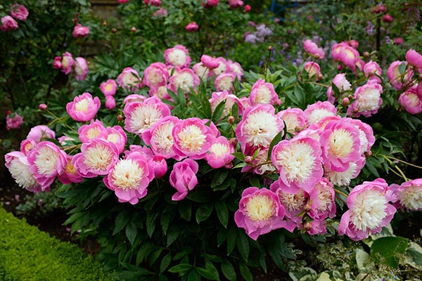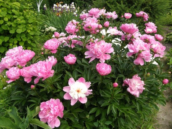 Mit Hilfe einer Pfingstrose entsteht eine schöne Hecke, die den Garten in separate Zonen unterteilt.