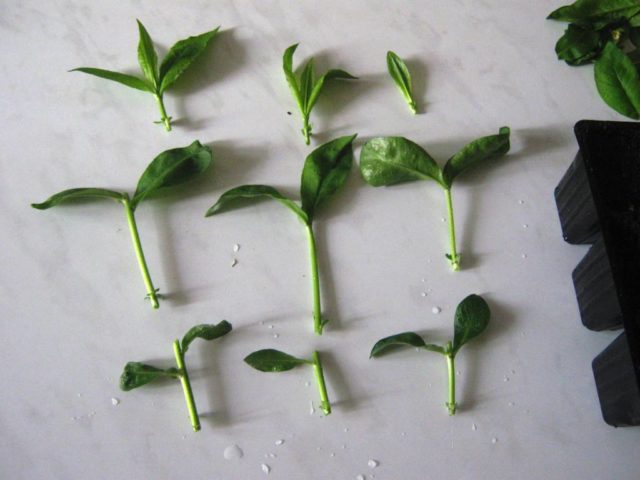Bei der Vermehrung durch Stecklinge wird ein Teil mit mehreren Knoten von einem gesunden Busch abgeschnitten und an einem dauerhaften Ort gepflanzt. Um die Sprossen zu wurzeln, können Sie sie zuerst in Behältern und nach einigen Wochen in einem Blumenbeet pflanzen.