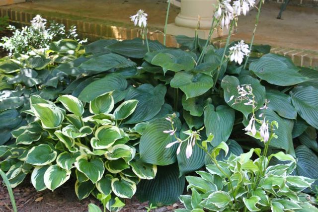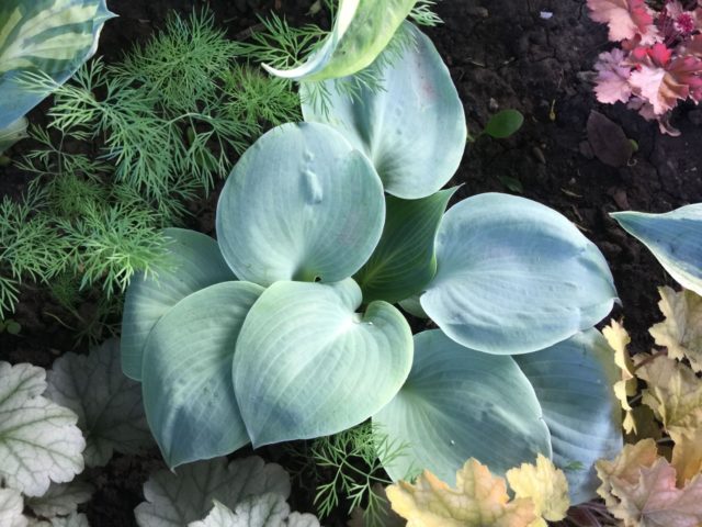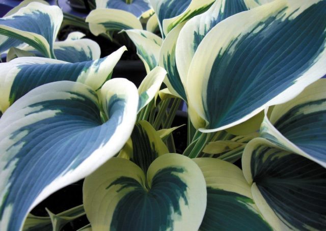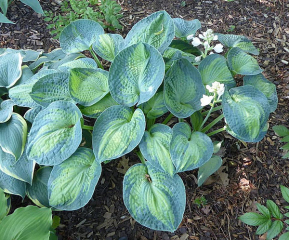 Diese Sorte besticht durch die Schönheit des Blattes: Sie ist bläulich-blau mit cremefarbenen Rändern. Der Busch gewinnt mit durchschnittlicher Geschwindigkeit an Masse.Volle Größe - 40 cm hoch und 1 m breit - reicht mitten im Sommer. Dann bildet es blaue Blütenstände. Die Blätter sind herzförmig, leicht länglich und erreichen eine Länge von 25 cm. Die Pflanze ist sehr winterhart - sie kann in Zone 2 angebaut werden. Designer machen es oft zum Mittelpunkt von Schattenblumenbeeten.