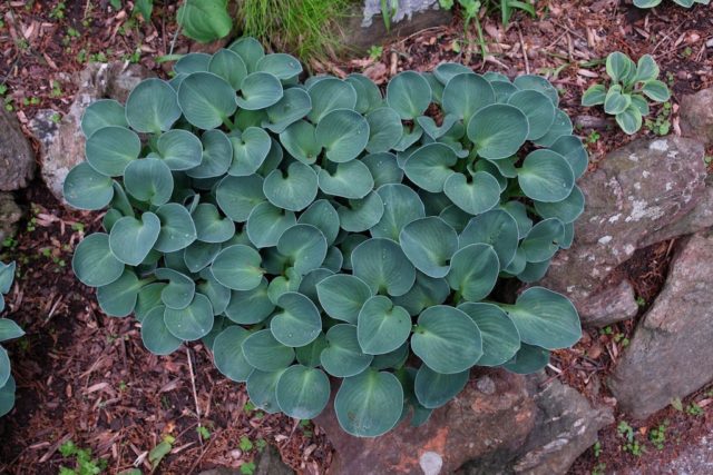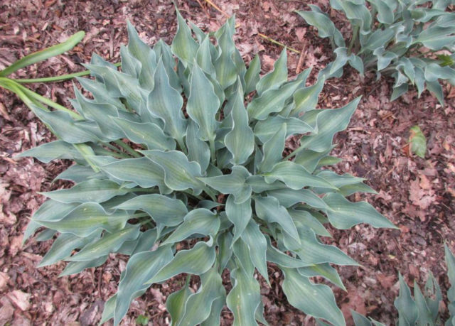 Die Höhe eines erwachsenen Busches beträgt 30-40 cm, er wird 60 cm breit. Die Blätter sind herzförmig, bläulich-blau und bis zu 15 cm lang. Die Farbe der Blütenstände ist lila. Hosta eignet sich hervorragend zum Pflanzen auf Rasenflächen, Steingärten, Blumenbeeten und Behältern. Unter der sengenden Sonne bilden sich auf den Blättern Verbrennungen.