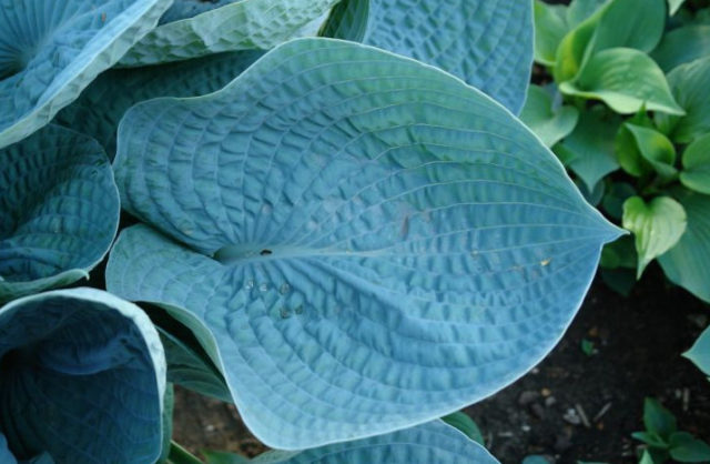 Einer der größten Vertreter des blauen Gastgebers. Große, breite, ovale Blätter mit einer gewellten Oberfläche sehen spektakulär aus. Pflanzenhöhe - 90 cm, Durchmesser - 150 cm. Die übliche Farbe für die Gruppe ist grau-blau. Blumen sind lila oder weiß, schmücken den Busch für eine lange Zeit. Die Sorte ist sehr robust gegenüber verschiedenen natürlichen Bedingungen und natürlichen Feinden.