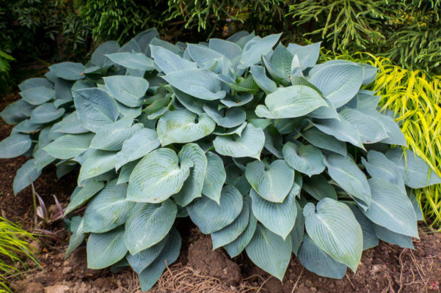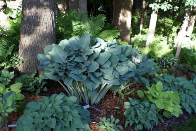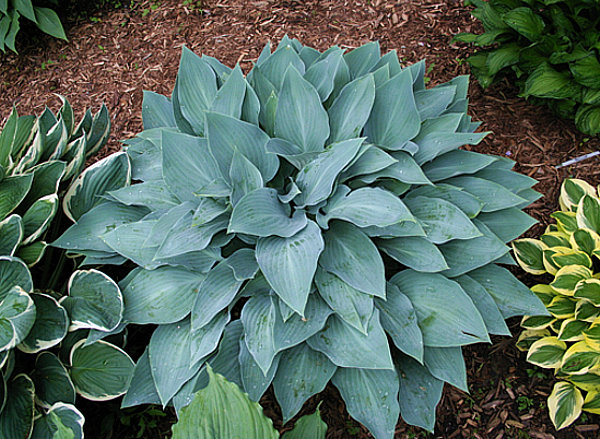 - 3 Hosts mit blauen Blättern im Landschaftsdesign