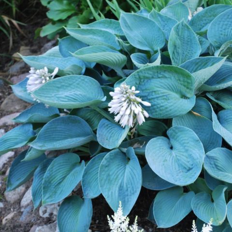 Hosta Blau ist ein unverzichtbares Merkmal des schattigen Bereichs des Gartens. Seine blauen Blätter schaffen eine romantische Atmosphäre auf dem Gelände. Sorten unterschiedlicher Höhe, Struktur und Farbe werden verwendet, um ungewöhnliche dekorative Kompositionen zu schaffen. Der Hauptvorteil von blauen Hosts besteht darin, dass keine komplexe Wartung erforderlich ist.