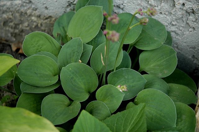Erschienen vor kurzem auf dem Markt. Der Anblick einer erwachsenen Pflanze im Garten ist atemberaubend. Die Blätter sind rund, dicht mit einer wachsartigen Blüte und ausgeprägten Adern. Der dunkelgrüne Hintergrund der Oberfläche wird mit dem dunkelgelben Zentrum verdünnt. Der Busch wächst langsam, im Erwachsenenalter erreicht er 40-45 cm. "Blaue Schatten" werden aktiv für Monoclumbums, Grenzen und Steingärten verwendet. Sie sehen in der Nähe eines Teiches großartig aus.