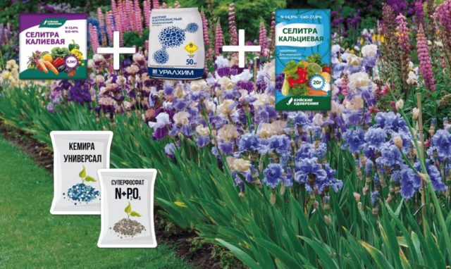 Um dies zu verhindern, werden Iris während der Saison mehrmals mit komplexen Kalium-Phosphor-Düngemitteln und im Frühjahr auch mit Stickstoffdüngern gefüttert, wenn ein Wachstumsdefizit vorliegt. Die Stickstoffdüngung sollte jedoch mit Vorsicht angewendet werden.Eine Überfülle davon kann dazu führen, dass die Iris nicht blüht, die Pflanzen nur Blätter haben.