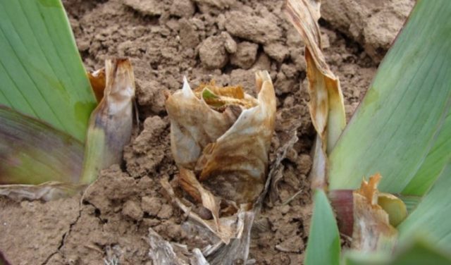 In einigen Fällen können anhaltende Regenfälle oder umgekehrt schwere Trockenheit dazu führen, dass die Pflanzen nicht stark genug sind, um Knospen zu bilden. Aufgrund des Überflusses an Feuchtigkeit können die Wurzeln leiden, aufgrund ihres Verfalls ist die Ernährung des oberirdischen Teils der Iris gestört. Das gleiche kann bei Wasserknappheit auftreten, insbesondere während der Knospungsphase.