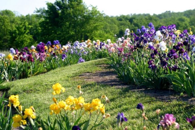 Um den besten Platz für die Iris zu finden, können Sie mehrere Blumenbeete in verschiedenen Teilen des Gartens anordnen.