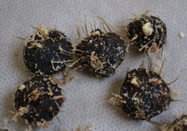 - Nach ca. 10 Tagen sollten Wurzeln und Wachstumspunkte erscheinen. Wenn sie nicht da sind, halten Sie die Anemonenknollen für eine weitere Woche oder etwas länger im gleichen Zustand. Dann können die Glühbirnen weggeworfen werden.