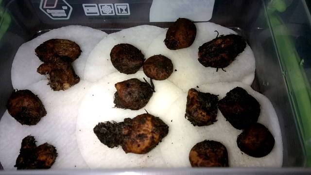 Leider werden nur gut getrocknete Anemonenknollen verkauft. Schauen Sie sich das Foto an, sie sind faltig und deformiert. Sie können die Keimung auf eine Weise überprüfen - pflanzen Sie sie in den Boden und warten Sie: Wird sie wachsen oder nicht? Es bleibt auf das Gewissen derer angewiesen, die Anemonen züchteten und Knollen verkauften.