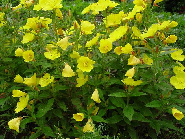 Diese mehrjährige gelbe Blume öffnet sich bei bewölktem Wetter, abends oder nachts. Seine Höhe erreicht einen halben Meter, es ist dürretolerant und wächst fast überall. Wenn Sie eine Blume ausgraben, diese aber nicht sofort pflanzen können, können Sie die Wurzeln in Wasser tauchen und wichtigere Dinge tun. Vielleicht wird der oberirdische Teil verdorren, er muss abgeschnitten werden, aber die erstaunlich lebensfähigen Wurzeln der Staude werden im Frühjahr neues Wachstum bringen.