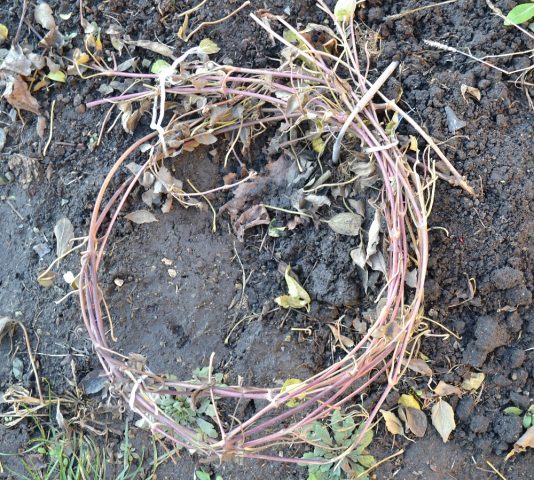 Für den Winter ist der Strauch nicht so oberflächlich geschnitten. Von den Trieben sind nur noch 50-80 cm der Gesamtlänge übrig.