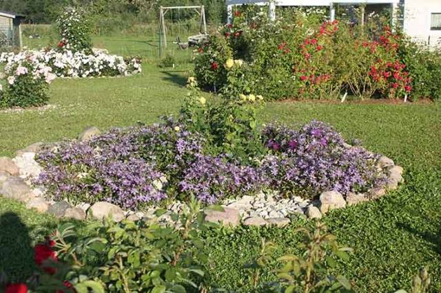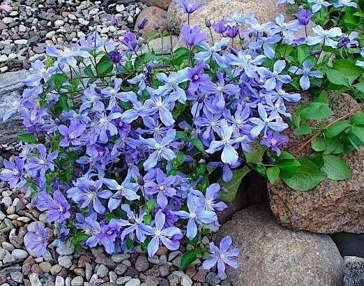 Sie können es in Steingärten, an Stützmauern aus Kies oder Stein verwenden. Und wenn Sie es neben kleinen Nadelbäumen oder Stauden pflanzen, können Clematis-Triebe durch sie keimen und sie, gestützt auf die Stängel, mit Blumen dekorieren.