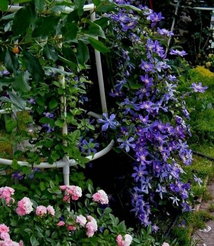 Wenn Sie eine Stütze verwenden möchten, installieren Sie diese am besten vor dem Pflanzen des Sämlings. Denken Sie daran, dass die dünnen Triebe von Arabella clematis nicht daran haften können und Sie sie die ganze Zeit zusammenbinden müssen.