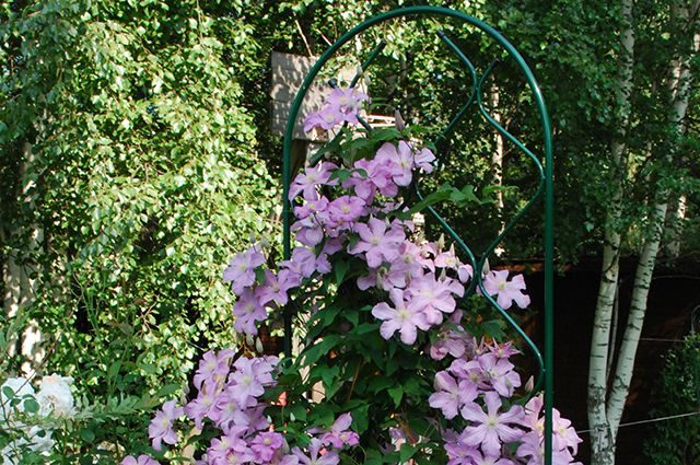 Rurans Webclematis müssen auf einem Träger befestigt werden. Das Gitter wird sorgfältig an den Seiten des Busches eingegraben. Wenn die Rebe für die vertikale Gartenarbeit des Pavillons verwendet wird, wird sie in der Nähe der Struktur gepflanzt. Clematis wird bis zu 3 m groß und schmückt so jede Struktur.