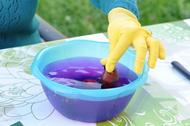 Es ist ratsam, die Zwiebeln vor dem Pflanzen vorzubereiten. Untersuchen Sie das Pflanzenmaterial sorgfältig und entfernen Sie alle Zwiebeln, die beschädigt sind oder Anzeichen einer Krankheit aufweisen. Weiche Zwiebeln sind auch zum Umpflanzen ungeeignet. Es ist ratsam, das gesamte Saatgut zu behandeln, um die Möglichkeit von Krankheiten und Fäulnis zu vermeiden. Dazu die Narzissenbirnen 30-40 Minuten in einer schwachen Lösung von Kaliumpermanganat (Kaliumpermanganat) einweichen. Diese Zeit reicht völlig aus, um das gesamte Material zu härten und zu desinfizieren.