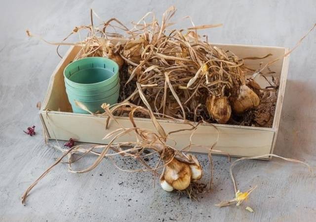 Schneiden Sie die restlichen Blätter von den ausgegrabenen Zwiebeln ab und lassen Sie sie trocknen. Es ist wichtig, dass der Trocknungsbereich dunkel und gut belüftet ist. Wenn das Material gut trocknet, dh nach mindestens 2-3 Wochen, müssen Sie es von der Erde und den Resten alter Schalen reinigen. Die Babys, die schwach an der Zwiebel der Mutter haften, können getrennt werden. Sie eignen sich auch zum anschließenden Pflanzen.