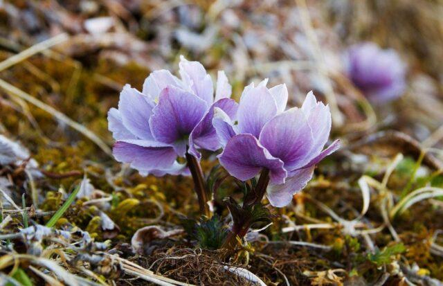 Der lila Badende (Trollius lilacinus) wächst im Altai, in der Mongolei, in China und in Zentralasien. Erhebt sich etwa 50 cm über dem Boden und produziert ungewöhnliche Lavendelknospen mit grünlich-gelben Nektarien in der Mitte. Die Pflanze blüht Ende Juni und Juli.