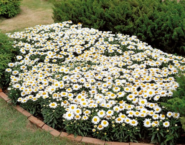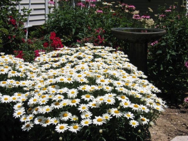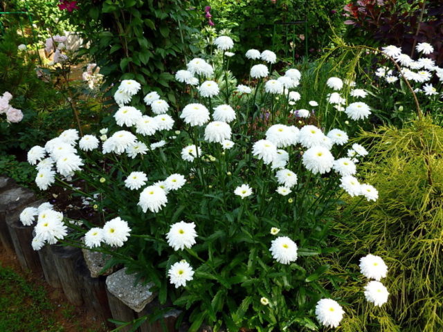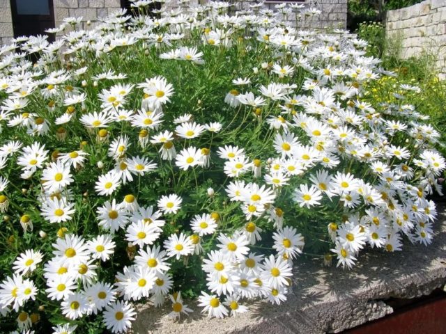 Da die Kamille von Juni bis Spätherbst blüht, ersetzt die Pflanze nach und nach "Nachbarn" im Garten und behält ihre dekorativen Eigenschaften für lange Zeit bei