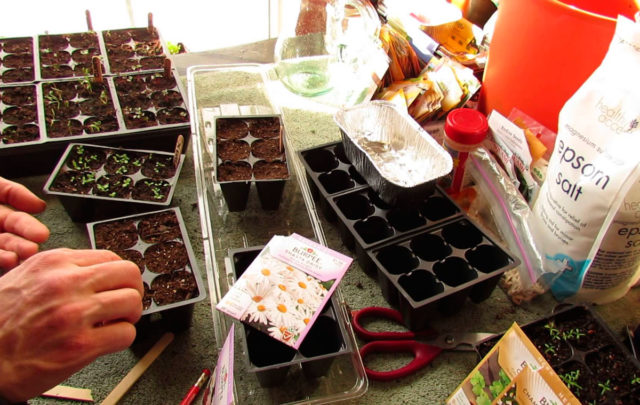 - Um einen Treibhauseffekt zu erzielen, wird der Behälter mit den Sämlingen mit Plastikfolie oder Glas abgedeckt.