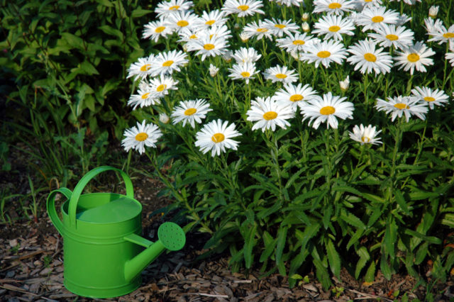 Das Gießen der dekorativen Kamille sollte nach Sonnenuntergang erfolgen, um eine Exposition gegenüber der sengenden Sonne zu vermeiden