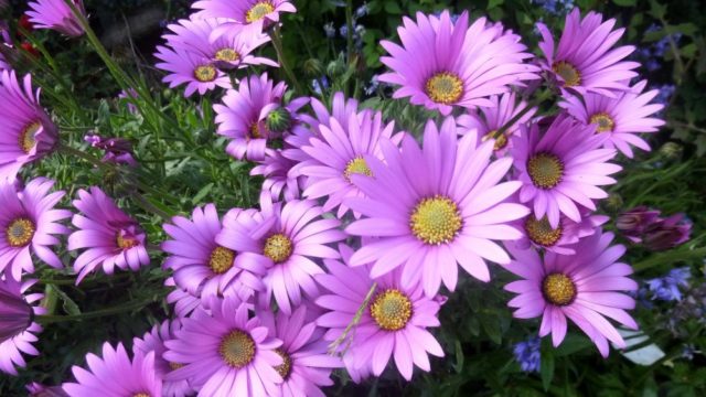 Um Landschaftsbereiche zu dekorieren, wählen Sie am besten Frotteesorten von Gartenmatrizen, die sich durch üppige Blüte und eine Fülle großer Blütenstände auszeichnen