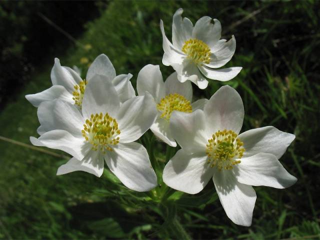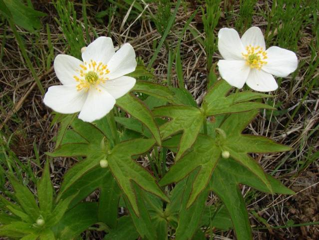 - Gabel. Diese Anemone wächst auf überfluteten Wiesen, kann 30-80 cm erreichen. Ihre tief zerlegten Blätter sind unten kurz weichhaarig, kleine weiße Blüten können auf der Rückseite des Blütenblatts einen rötlichen Farbton haben.