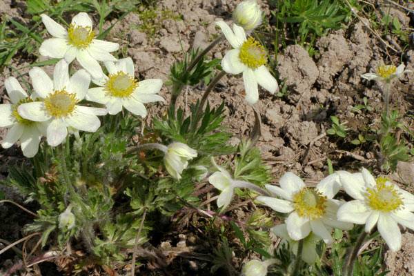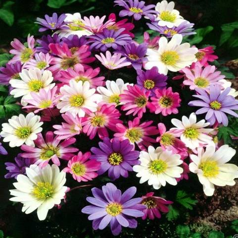 - Ausschreibung (Blanda). Kältebeständige Anemone. Es ist lichtbedürftig, dürreresistent, wächst bis zu 15 cm, hat viele Gartenformen mit unterschiedlichen Blütenfarben.