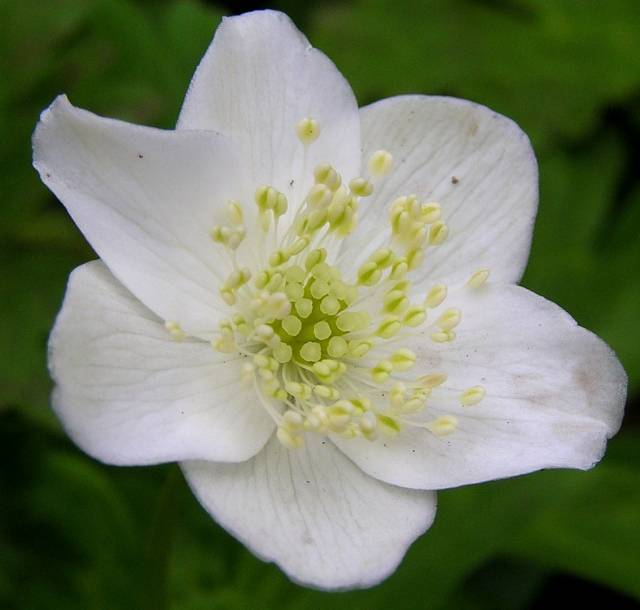 - Glatt.Eine ganz normale Anemone, die sich durch große Staubblätter in weißen Blüten auszeichnet.