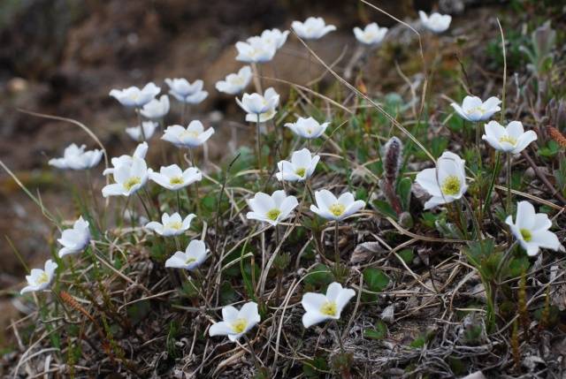 - Altai. Erreicht 15 cm, Blume enthält 8-12 Weiß Blütenblätter, die außen eine bläuliche Farbe haben können.