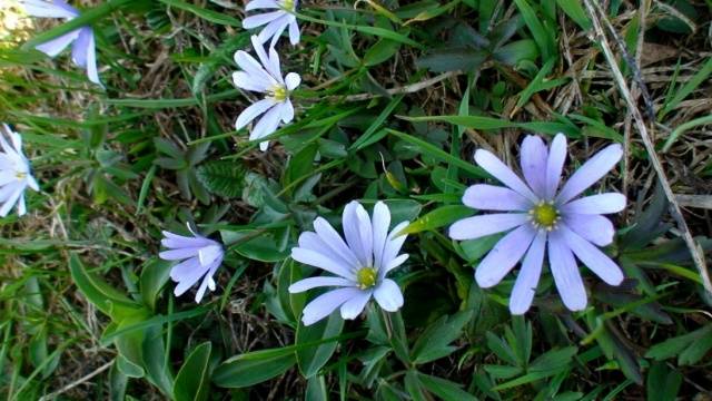 - Apennin. Anemone ca. 15 cm hoch mit einzelnen blauen Blüten 3 cm Durchmesser. Kältebeständige Art, im Boden überwinternd.