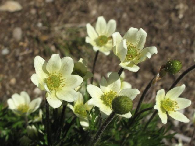 - Parviflora (kleinblütig). Wächst von Alaska nach Colorado in Bergwiesen und Hängen. Die Blätter dieser Anemone sind sehr schön, dunkelgrün, glänzend. Einzelne cremefarbene kleine Blüten.
