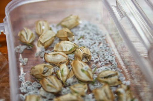 Blütenkörner sind klein, es ist schwierig, sie stückweise zu pflanzen. Die Farbe der Körner ist schwarz und sie gehen leicht im Licht verloren. Erfahrene Gärtner haben einen Ausweg aus dieser Situation gefunden: