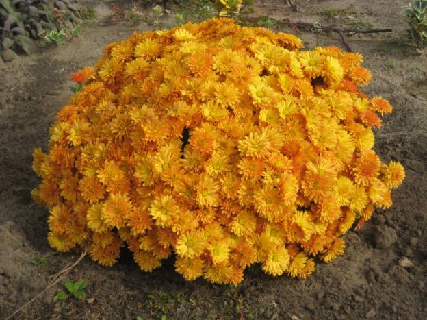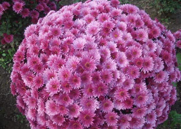 Niedrig wachsende Chrysanthemensorten sind frostbeständig genug, um in der kalten Jahreszeit im Blumenbeet zu bleiben und keine unnötigen Probleme bei der Transplantation zu verursachen.