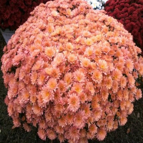 Branbeach Orange ist eine niedrig wachsende, spät blühende Chrysantheme mit einem biologischen Zyklus, der im Oktober beginnt. In der mittleren und mittleren Gasse verlässt der Busch auf dem Höhepunkt der Blüte oft den Schnee. Dies ist eine der frostbeständigen Sorten mit leuchtend orangefarbenen gefüllten Blüten mit mittlerem Durchmesser (bis zu 5 cm).