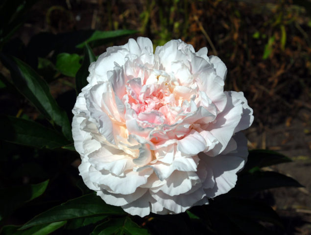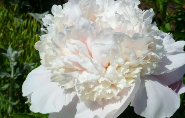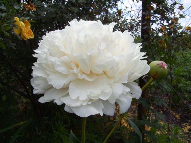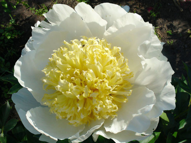 Schneeweiße Pfingstrose sieht auf jedem Blumenbeet gut aus
