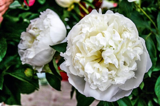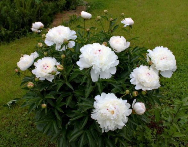 Weiße Pfingstrosen werden von Gärtnern besonders geschätzt, solche Blumen sind auf dem Gelände nicht zu übersehen. Zahlreiche Sorten verdienen eine eingehende Untersuchung, da sie in Form und Größe stark variieren können.