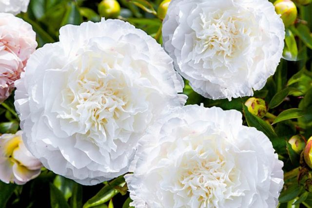 Schneeweiße Blüten werden normalerweise in mehrere Kategorien unterteilt. Zuallererst sind Pfingstrosen: