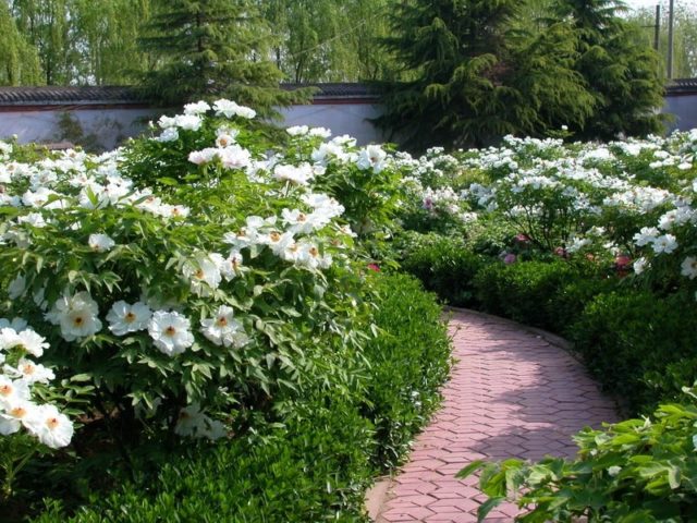 Hohe baumartige Pfingstrosensorten können im Garten eine Hecke bilden