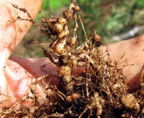 Der Nematode greift die Wurzeln der Pflanze an und führt zum Auftreten von Knotenwachstum