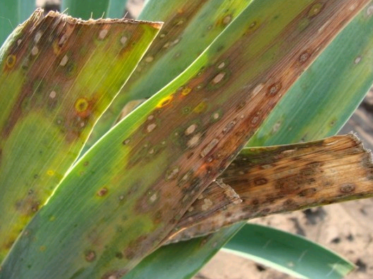 Ein Beispiel für eine solche Krankheit ist die August-Krankheit. Es betrifft viele Kulturen der Familie der Liliaceae, und Pfingstrosen-Tulpen sind keine Ausnahme.